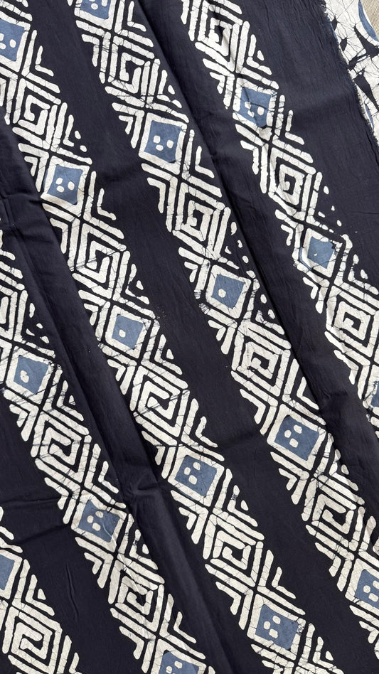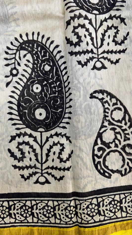Soft Block Printed Mulmul Cotton Saree (OFF-WHITE & BLACK)