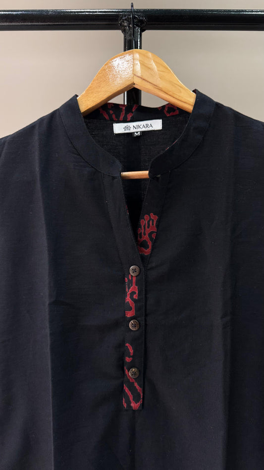 Premium Khadi Cotton Kurti with U-shaped Hem (BLACK)