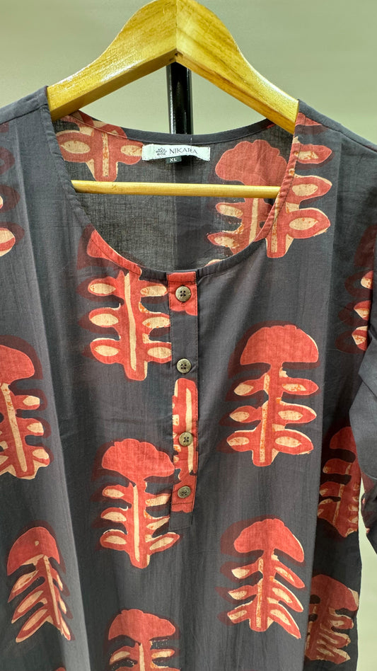 Soft Cotton Mushroom Print Kurti (CHARCOAL BROWN)