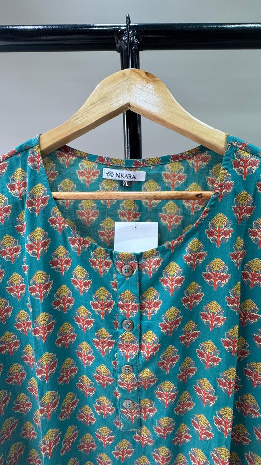 Soft Cotton Floral Printed Kurti (PINE GREEN)