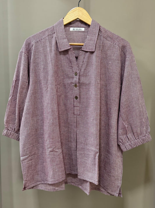 Handwoven Cotton Check Shirt for Women (DEEP MAROON)