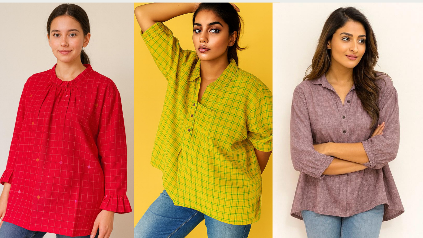 Handwoven Cotton Check Shirt for Women (EARTHY YELLOW)