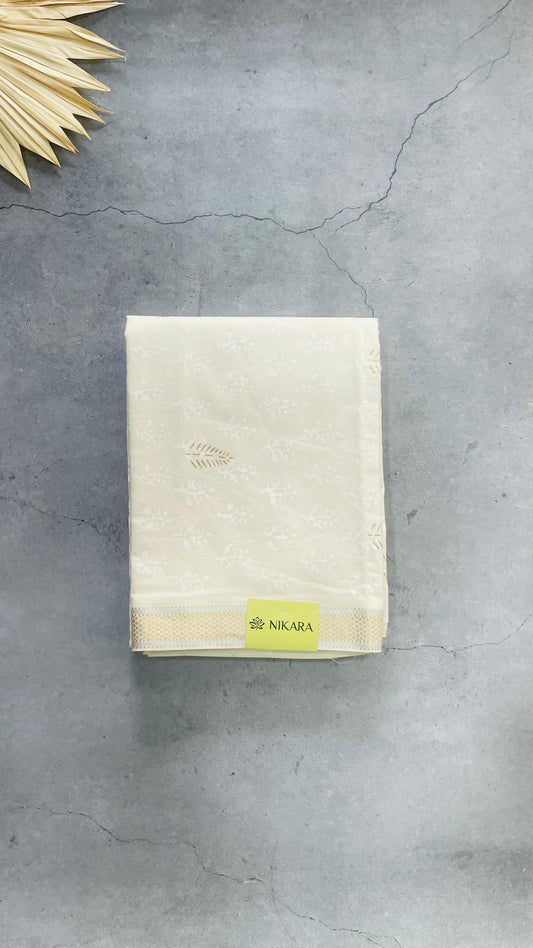 Soft Handblock Printed Cotton Salwar Suit with Resham Border and Khari Print (OFF WHITE)