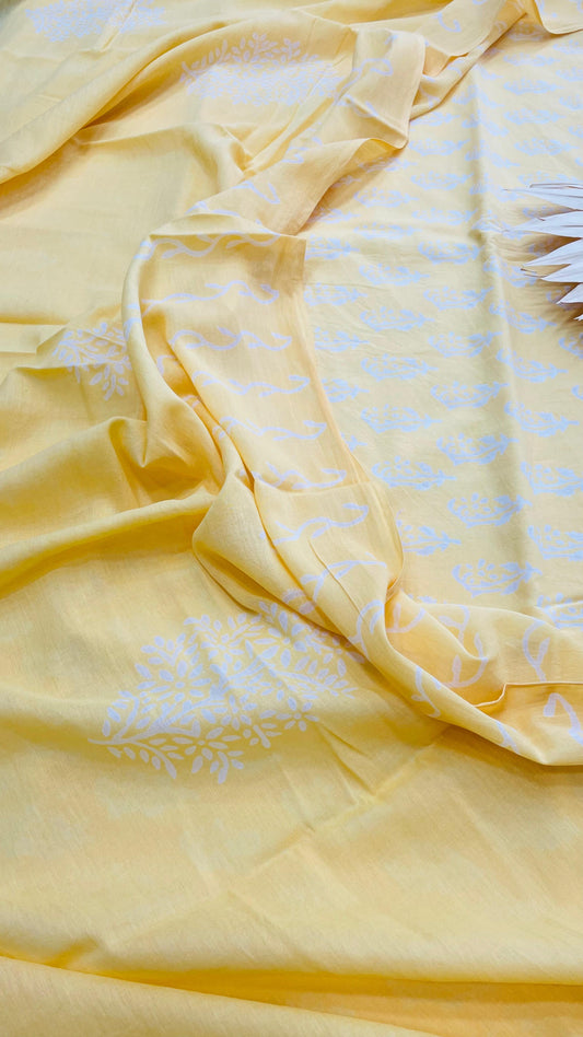 Soft Handblock Printed Cotton Salwar Suit with Mulmul Dupatta (LIGHT YELLOW)