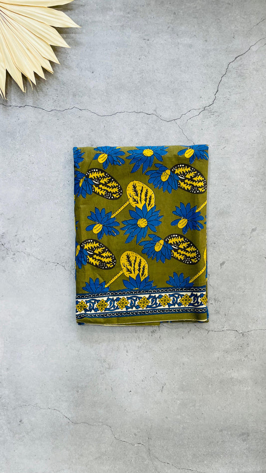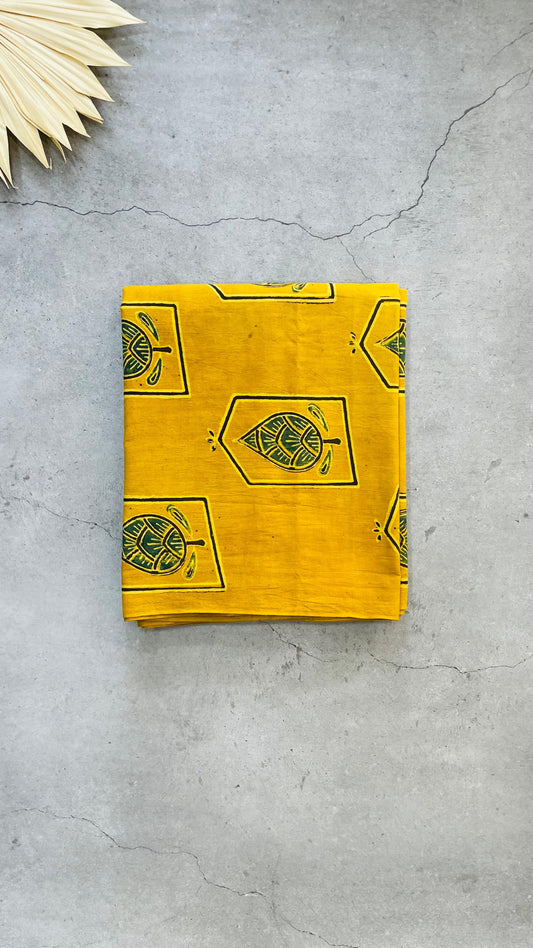 Soft Handblock Printed Cotton Salwar Suit with Mulmul Dupatta (MUSTARD & GREEN)