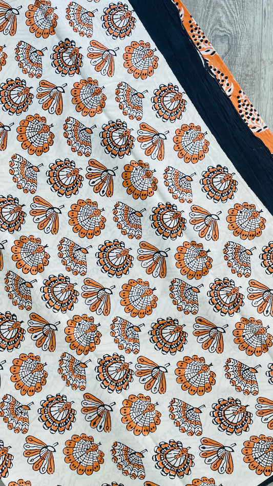 Soft Handblock Printed Cotton Saree (ORANGE)