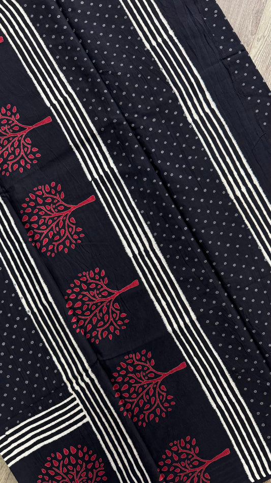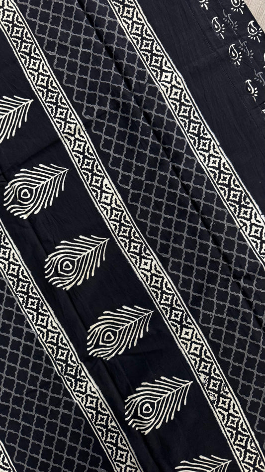 Soft Block Printed Mulmul Cotton Saree (BLACK)