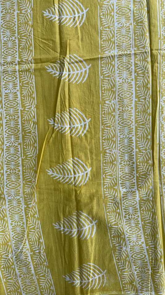 Soft Block Printed Mulmul Cotton Saree (MUSTARD YELLOW)