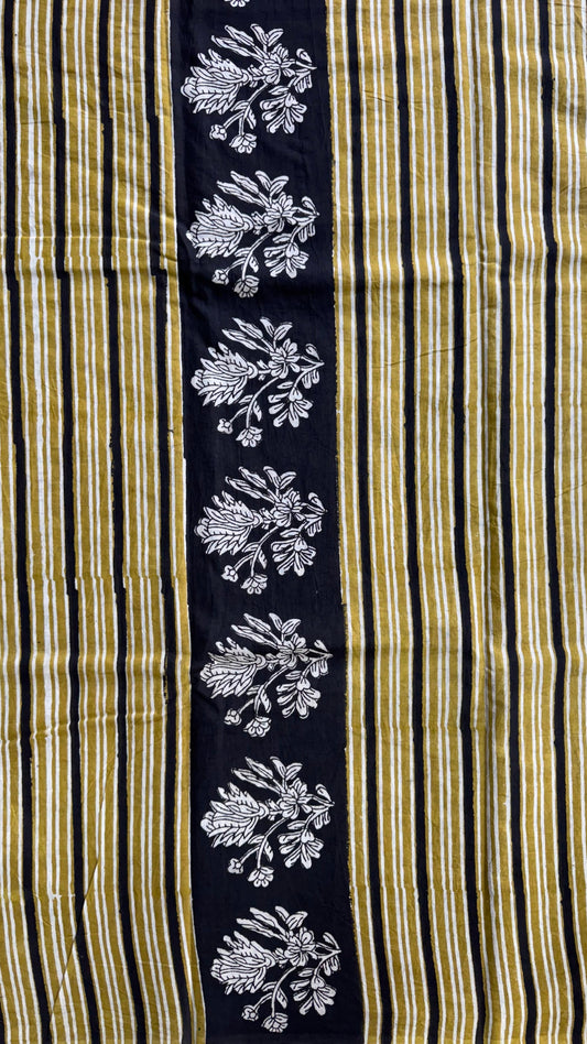 Soft Block Printed Mulmul Cotton Saree (BLACK & BEIGE)