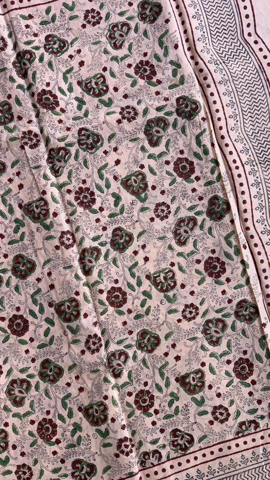 Soft Block Printed Mulmul Cotton Saree (OFF-WHITE & MAROON)