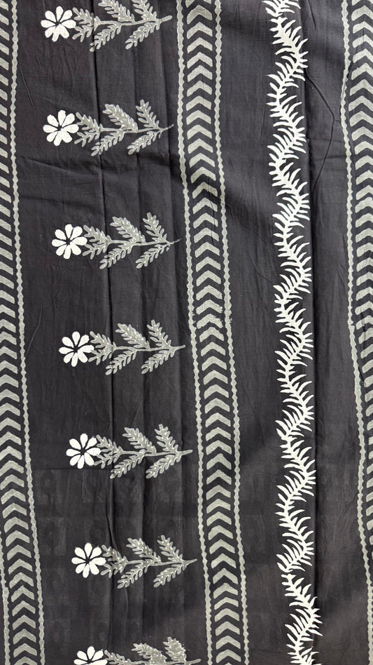 Soft Block Printed Mulmul Cotton Saree (BLACK & WHITE)