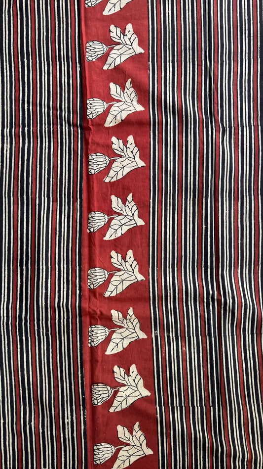 Soft Block Printed Mulmul Cotton Saree (MAROON)