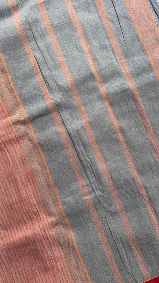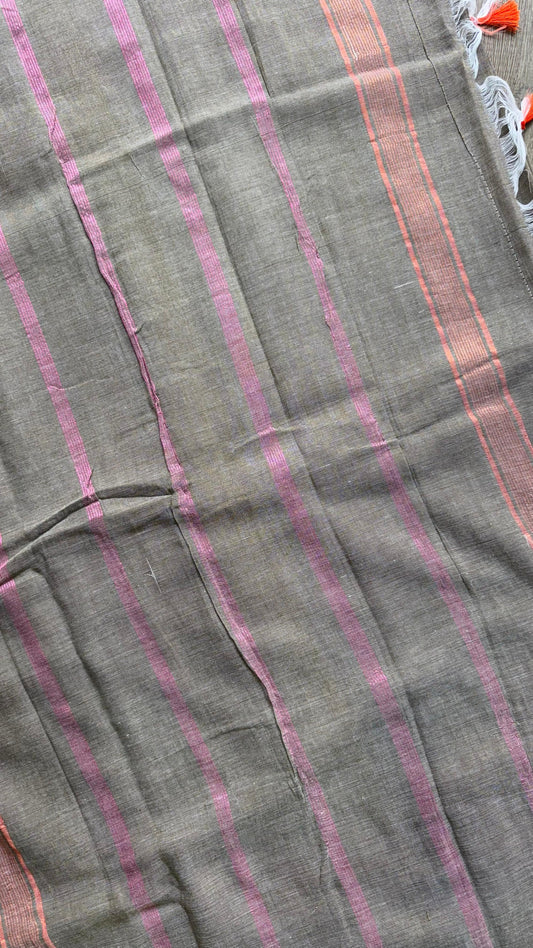 Soft Linen Cotton saree with stripes (ORANGE & GREY)