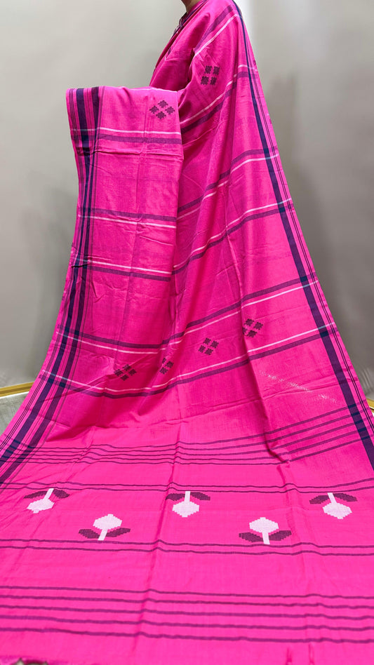 Premium Handwoven Cotton Jamdani Saree (PINK)