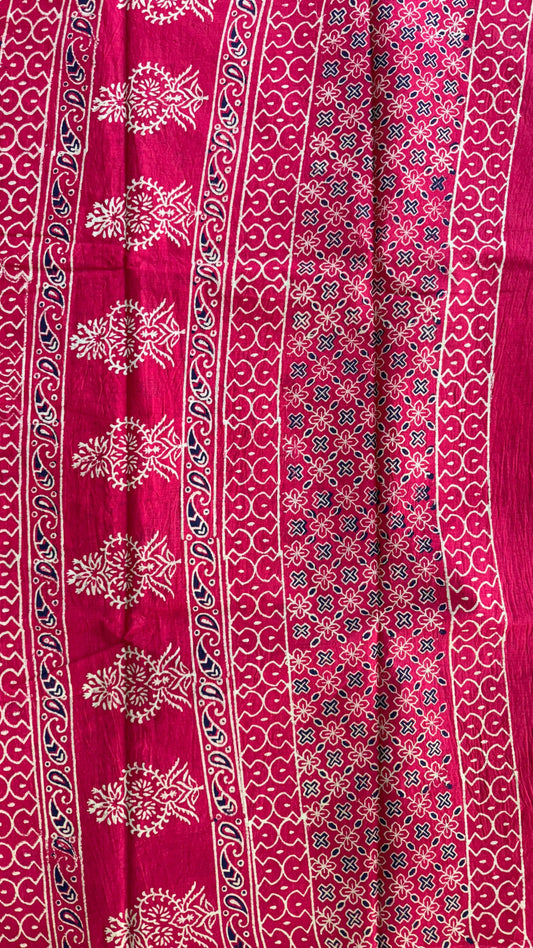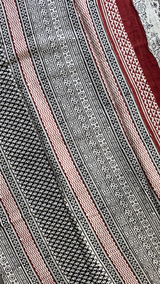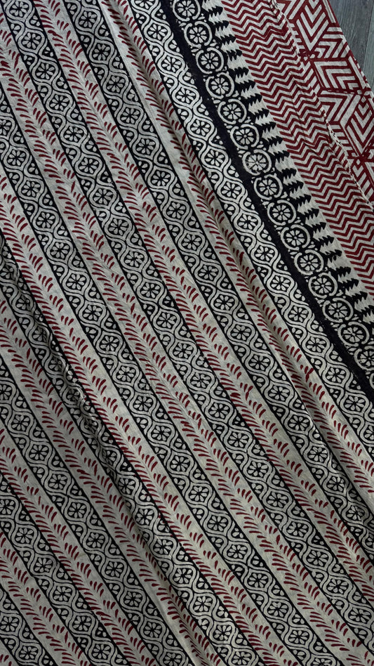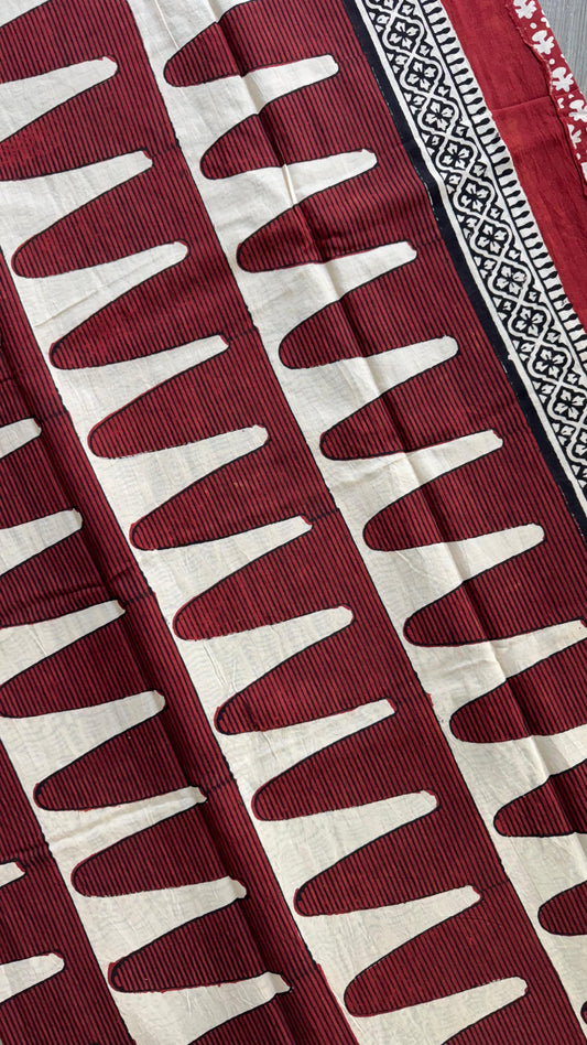 Soft Handblock Printed Cotton Saree (MAROON & OFF WHITE)