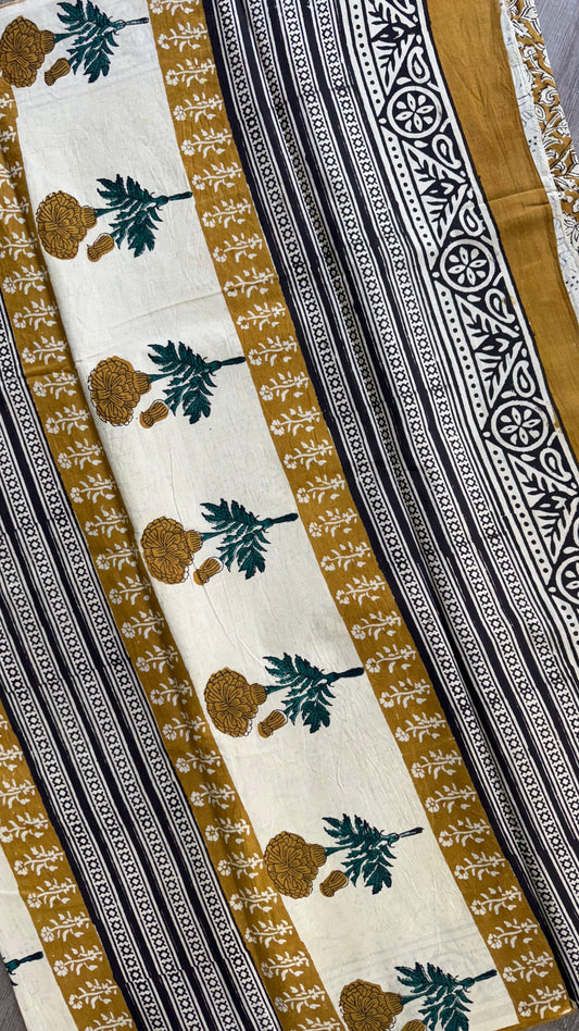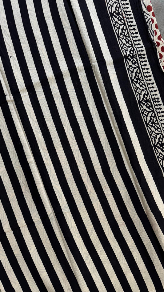 Soft Handblock Printed Cotton Saree (OFF WHITE & BLACK)