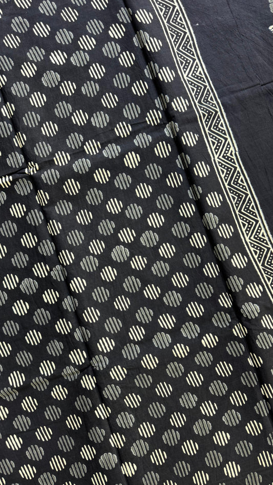 Soft Handblock Printed Cotton Saree (BLACK)