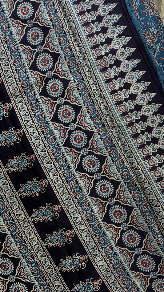 Soft Handblock Printed Cotton Saree (BLUE)