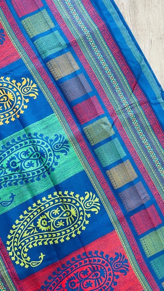 Soft Digital Printed Kashmiri Katan Silk Saree (NAVY BLUE)