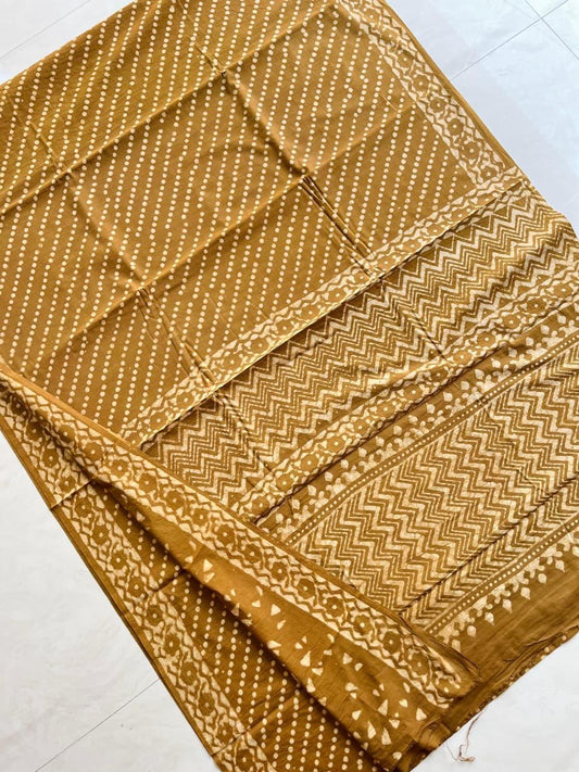 Soft Block Printed Mulmul Cotton Saree (BROWN)