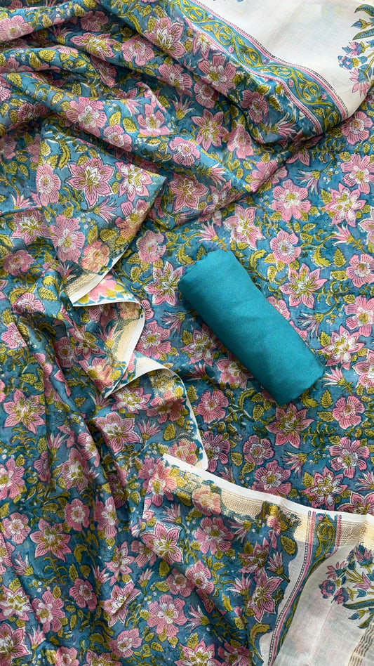 Maheshwari Silk Cotton Salwar Suit (AQUA BLUE & PINK)