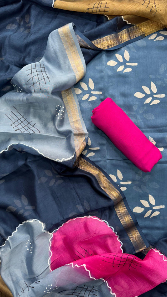 Maheshwari Silk Cotton Salwar Suit (NAVY BLUE & PINK)