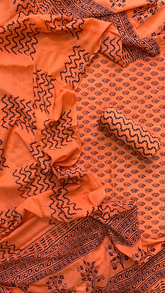 Bagh Print Cotton Salwar Suit with Mul Dupatta (DARK PEACH)