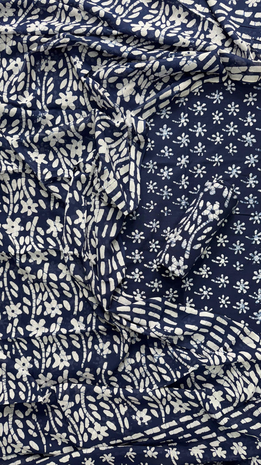 Soft Block Printed Cotton Salwar Suit with Mul Dupatta (DARK BLUE)