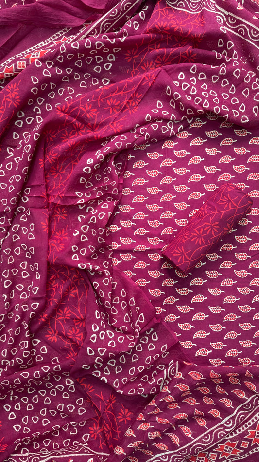 Soft Block Printed Cotton Salwar Suit with Mul Dupatta (BEET RED)