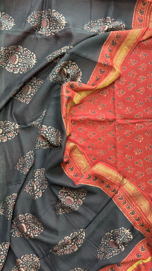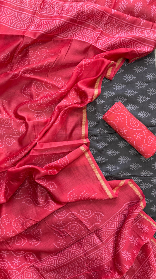 Maheshwari Silk Cotton Salwar Suit (BLACK & RED)