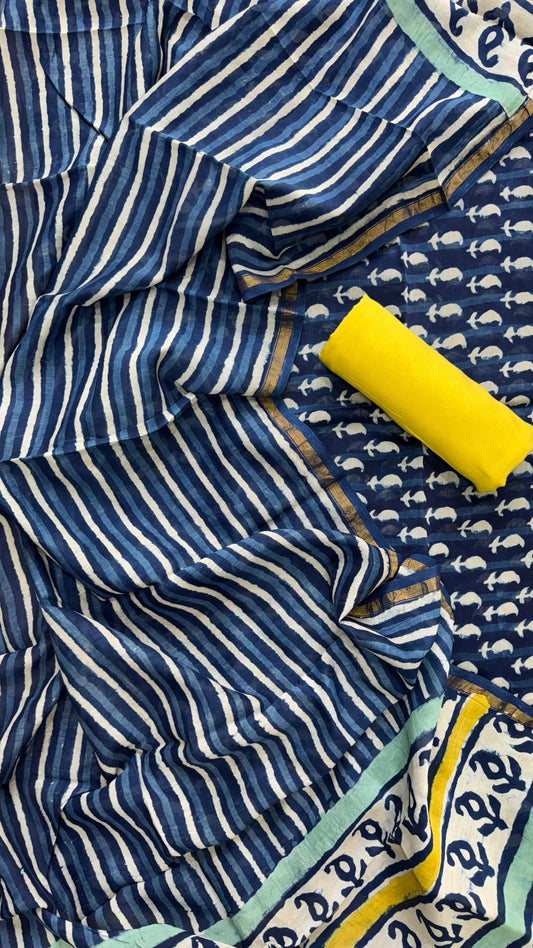 Maheshwari Silk Cotton Salwar Suit (INDIGO & YELLOW)