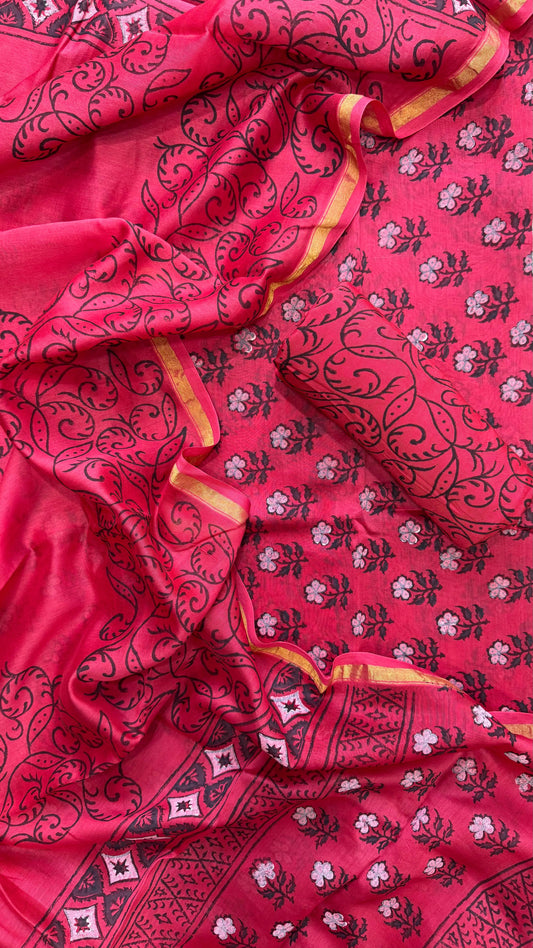Maheshwari Silk Cotton Salwar Suit (RED & BLACK)