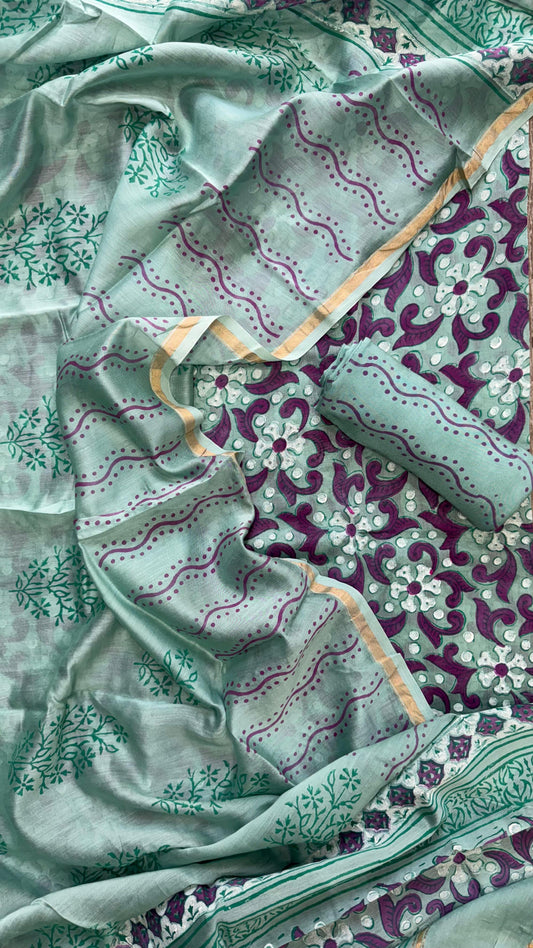 Maheshwari Silk Cotton Salwar Suit (PASTEL GREEN)