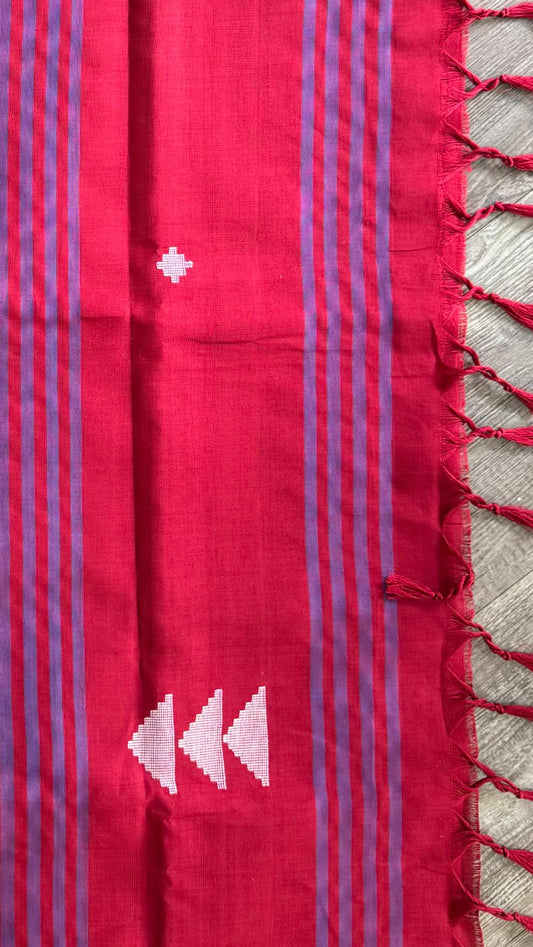 Premium Handwoven Soft Cotton Jamdani Saree (BEETROOT PINK)