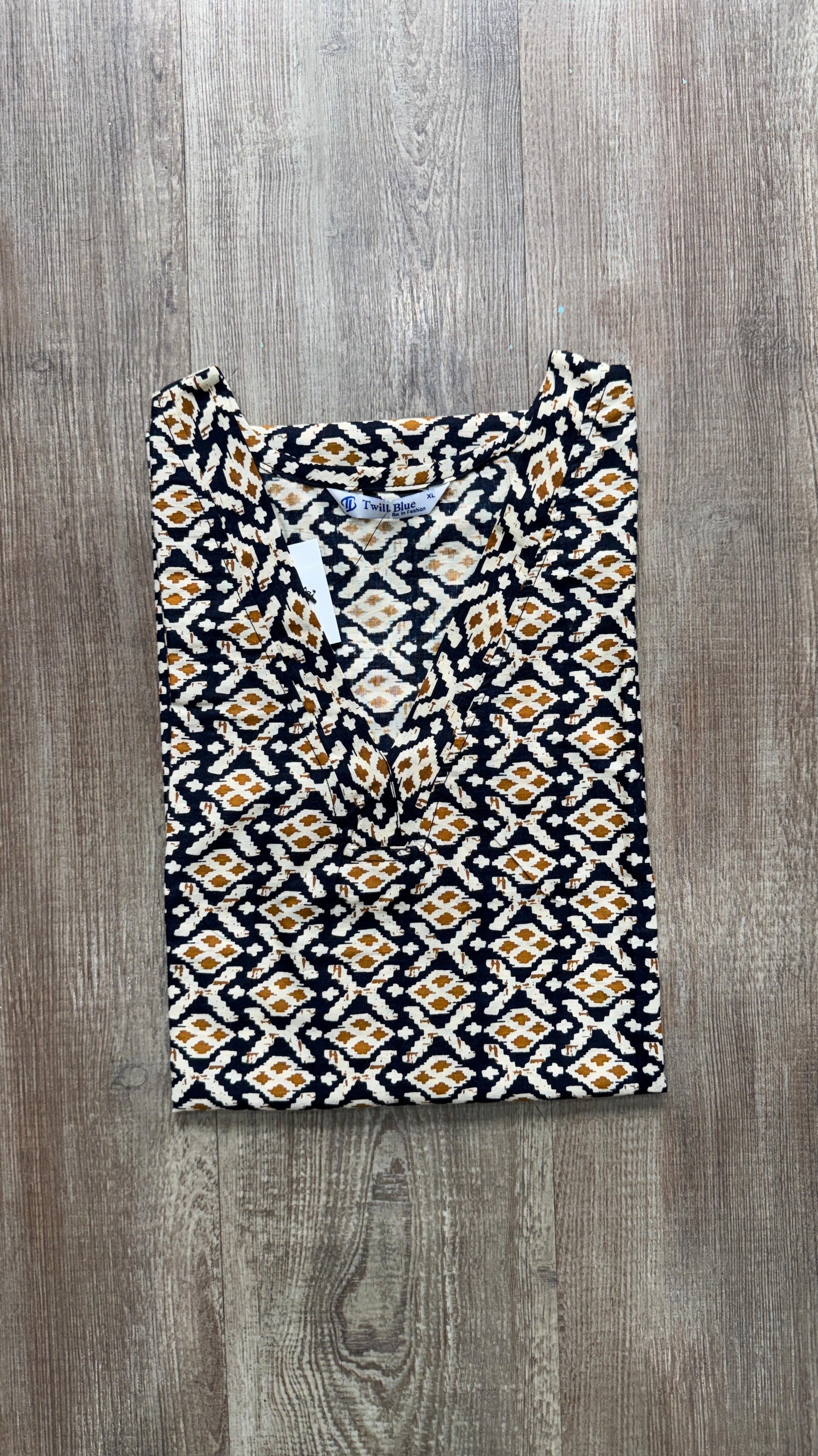 Printed Kalamkari Cotton Kurti (BLACK & OFF WHITE)
