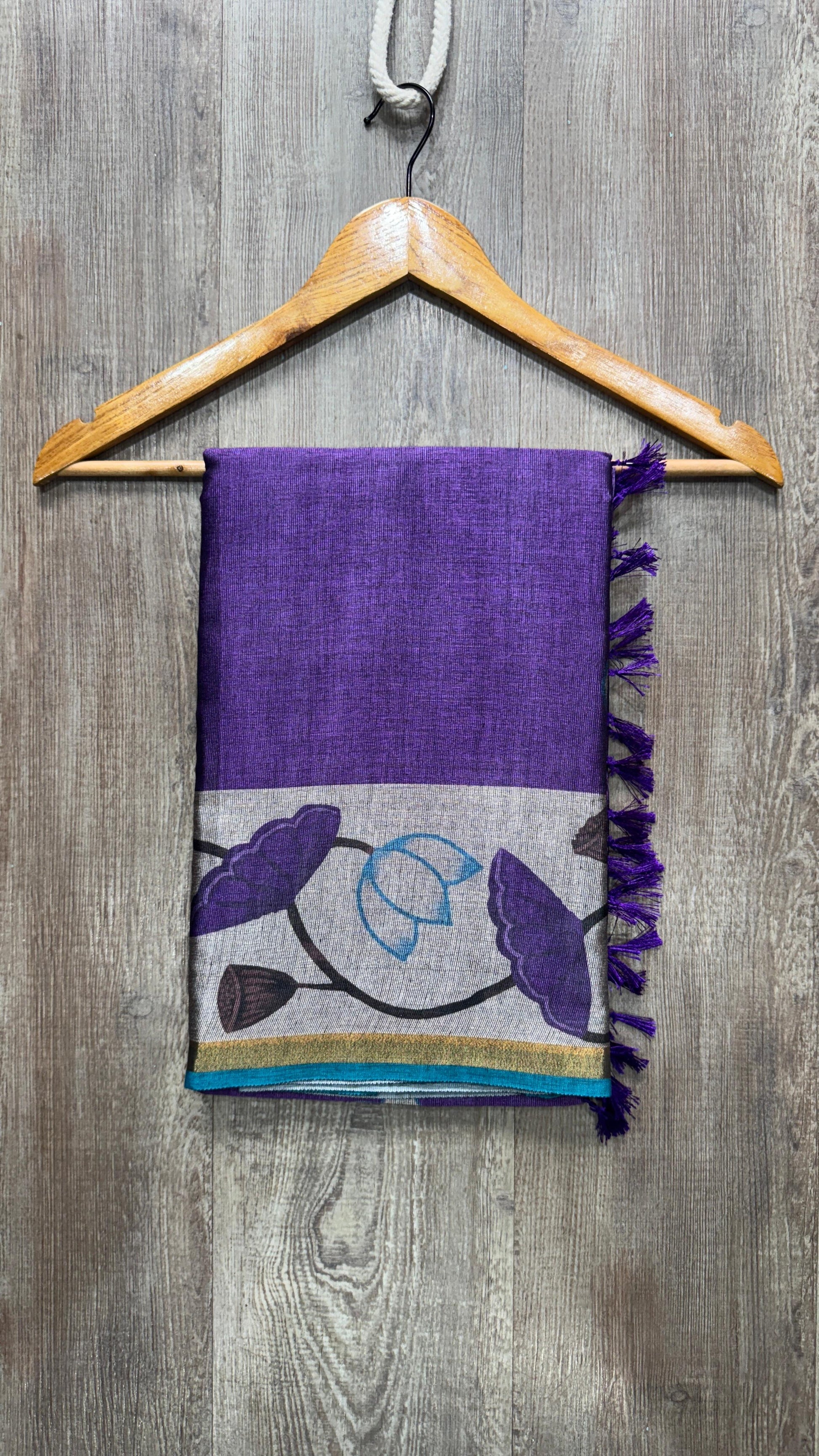 Semi Tussar Printed Saree with Zari Border (PURPLE)