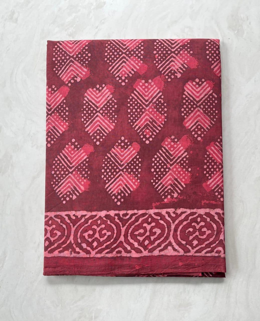 Soft Block Printed Mulmul Cotton Saree (BEETROOT RED)