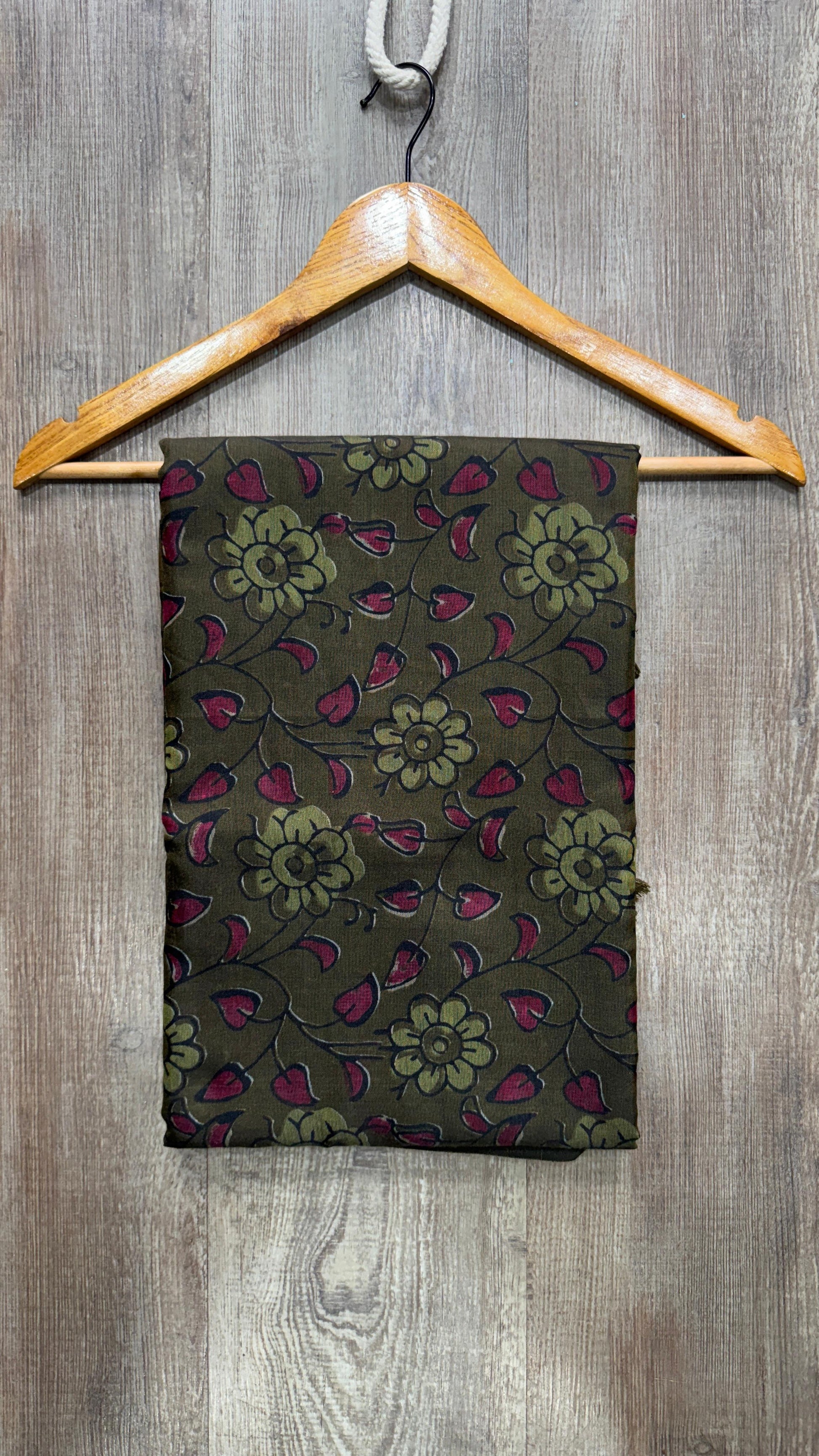 Soft Chanderi Cotton Printed Saree (BOTTLE GREEN)